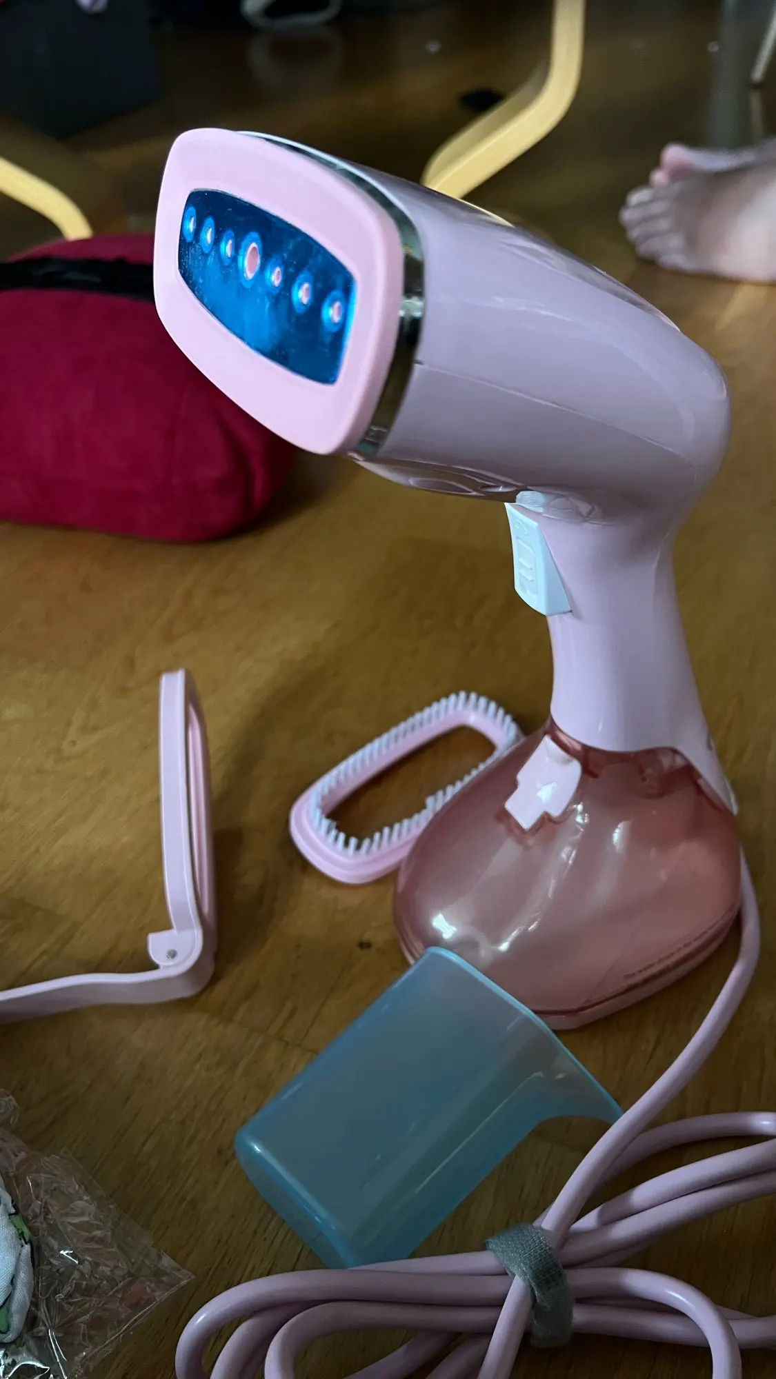 The steamer is beautiful and works really well,,heats up fast (in just a few seconds). The steam is powered Pugh to steam heavy winter coats no problem. I place my order on a Sunday, received the steamer on the Tuesday! I am a happy customer 😊✨